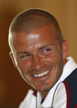 England's David Beckham attends a news conference at the team hotel in Watford, north of London March 24, 2008. [Agencies]