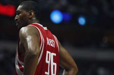 Houston Rockets Ron Artest stands on the foul line during first half of NBA action against the Dallas Mavericks in Dallas, Texas October 30, 2008. [Agencies]