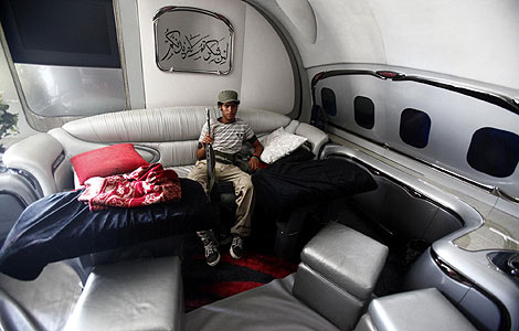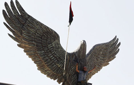Oscar Pistorius of South Africa (L) runs past Femi Ogunode of Qatar during the men's 400 metres heats at the IAAF World Championships in Daegu, Aug 28, 2011. [Photo/Agencies] |
