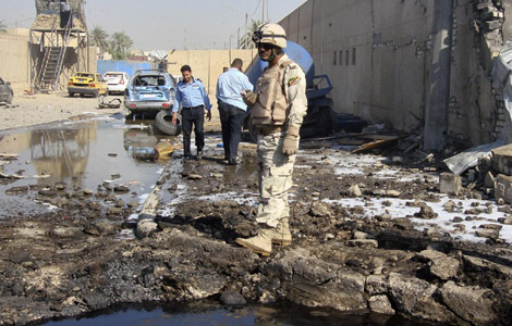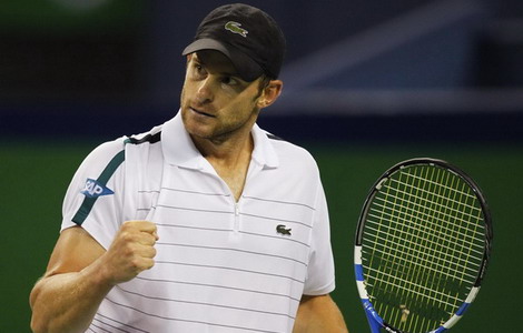 China's Zhang Ze tries to return a ball while playing against Radek Stepanek of the Czech Republic during their first-round match at the 2011 Shanghai Masters tournament at the Qizhong Tennis Center in Shanghai on Tuesday. Stepanek won 6-3, 6-3. Gao Erqiang / China Daily |