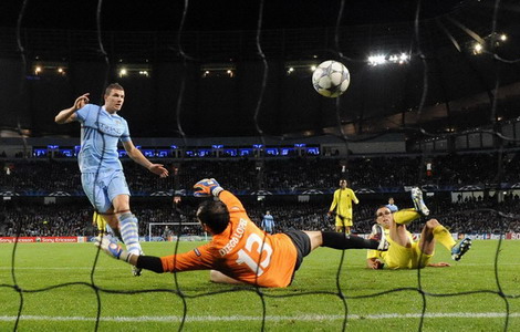 ![]() Real Madrid's Karim Benzema (R) celebrates with teammates after scoring a goal against Olympique Lyon during their Champions League soccer match at the Santiago Bernabeu stadium in Madrid, Oct 18, 2011. [Photo/Agencies]