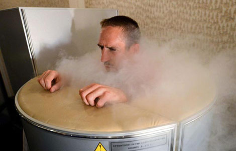 France's national soccer team midfielder Franck Ribery is seen in a sauna at the team's training center in Kircha, on the eve of the Euro 2012 football championships opening match.