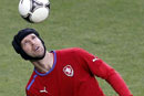 A worker makes the final touches on flags at the city stadium in Wroclaw, June 7, 2012, on the eve of the Euro 2012 soccer match between Russia and Czech Republic.