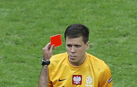 Greece substitute Dimitris Salpingidis scored a second-half equaliser to earn a 1-1 draw with Euro 2012 co-hosts Poland in a pulsating opening match on Friday in which the Greeks missed a penalty and both sides finished with 10 men.