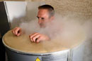 France's national soccer team midfielder Franck Ribery is seen in a sauna at the team's training center in Kircha, on the eve of the Euro 2012 football championships opening match.