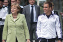 German Chancellor Angela Merkel had dinner with the German national team in their Euro 2012 headquarters in Sopot of Poland on Wednesday.