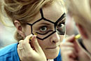 A Ukrainian fan with his face painted in national colors smiles in Lviv June 8, 2012. Four Ukrainian cities will host matches for the Euro 2012 soccer championship.