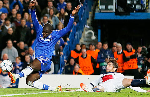 Chelsea snatched a dramatic late goal through Demba Ba to beat Paris St Germain 2-0 and reach the Champions League semi-finals on the away goals rule on another memorable European night at Stamford Bridge on Tuesday.