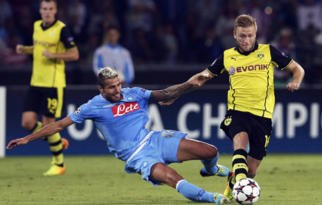Front-runners Dortmund squandered their lead in the standings with a draw at Nuremberg meanwhile Bayern cruised to a 4-0 win over Schalke to catch up with the BVB in the German Bundesliga on Saturday.