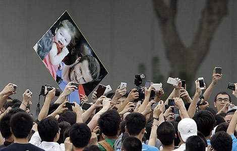 Several people were injured on Thursday after rabid fans broke through a police cordon trying to catch a glimpse of the former England soccer captain at Tongji University.