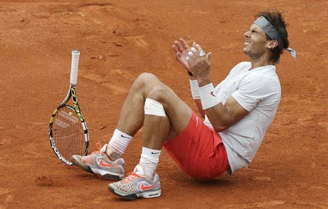 Rafa Nadal displayed the athleticism and self-belief that earned him seven French Open titles to tame Novak Djokovic 6-4 3-6 6-1 6-7(3) 9-7 in a pulsating 4-1/2 hour Roland Garros semi-final on Friday.
