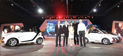 Towering NBA star Kobe Bryant has returned to China to once again lend his larger-than-life image to the diminutive smart car brand.