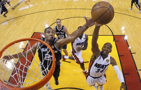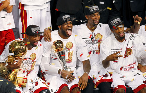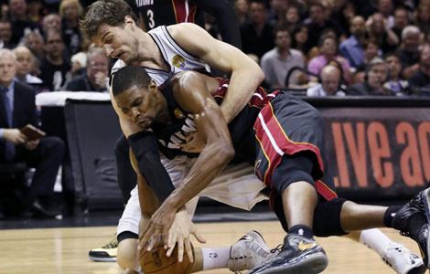 LeBron James had 37 points and 12 rebounds and the Miami Heat repeated as champions with a 95-88 victory over the San Antonio Spurs in Game 7 of the NBA Finals on Thursday night.