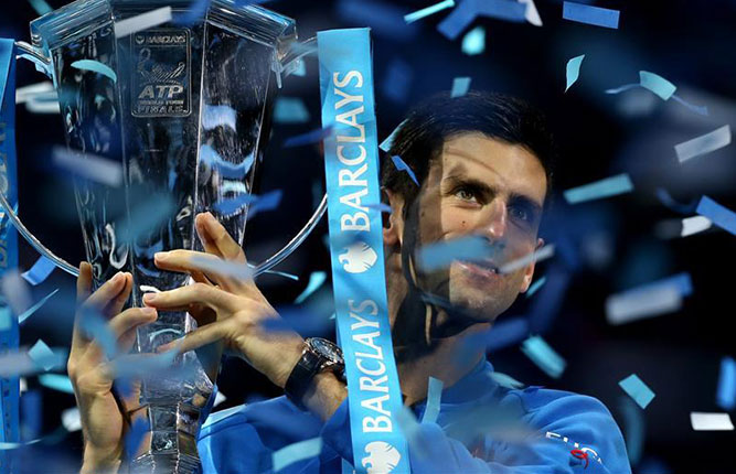 World No. 1 Novak Djokovic capped a perfect season as he beat six-time champion Roger Federer to win a record fourth straight ATP World Tour Finals title at London's O2 Arena on Sunday.