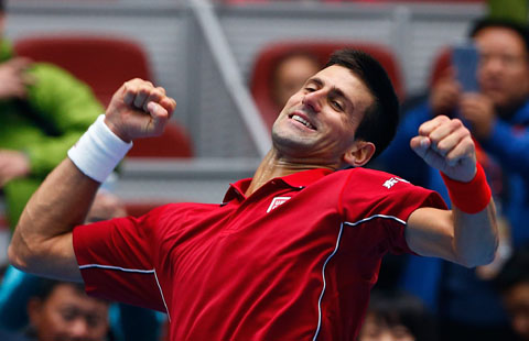 World No 1 Novak Djokovic of Serbia (left) and Rafael Nadal enjoy the occasion, Sept 29, 2014.