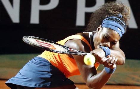 World number one Serena Williams inflicted swift revenge on behalf of her older sister when she beat Britain's Laura Robson 6-2 6-2 in the Rome Masters.