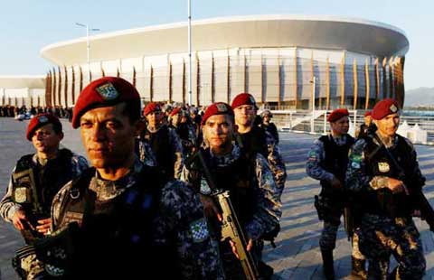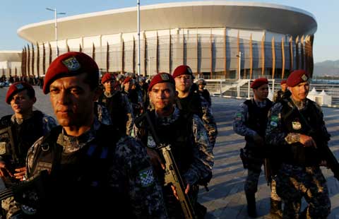 Brazil's top security force officially took control of security at the venues for the Rio Olympics in a ceremony at Barra Olympic Park on Tuesday.