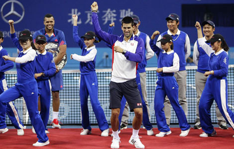 Novak Djokovic from Serbia and Victoria Azarenka of Belarus claimed their men's and women's China Open singles title in Beijing on Oct 7, 2012.
