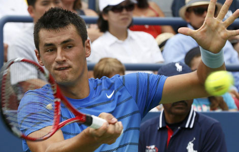 With his father banned from the US Open and memories burning of an early surrender in a second-round exit last year, Australia's Bernard Tomic ground out a five-set victory on Monday.