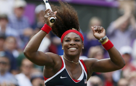 Fourth seed Serena Williams won the women's singles gold medal after beating Russia's third seed Maria Sharapova 6-0, 6-1 in the London Olympics tennis tournament on Saturday.