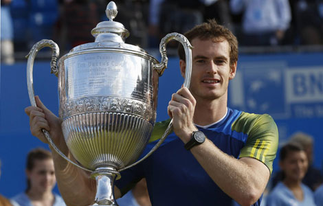 World No 2 Andy Murray claimed his third title of the Queen's Club grass court event as he completed his preparation for Wimbledon with victory over Marin Cilic of Croatia here on Sunday.