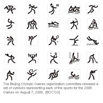 The Beijing Olympic Games organization committee released a set of symbols representing each of the sports for the 2008 Games on Monday, one day before its two-year countdown to the opening ceremonies.