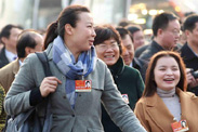 Deng Yaping answers questions from journalists during the National People's Congress (NPC) on March 3, 2010. Deng served one session of the NPC and three terms of the Chinese People's Political Consultative Conference.