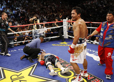 Filipino boxing icon Manny Pacquiao defeated his British rival Ricky Hatton and became the new International Boxing Organization (IBO) light welterweight champion.