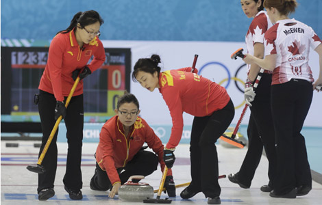The Chinese women's curling team lost to Canada 9-2 in their first match at the Sochi Winter Olympic Games on Monday.