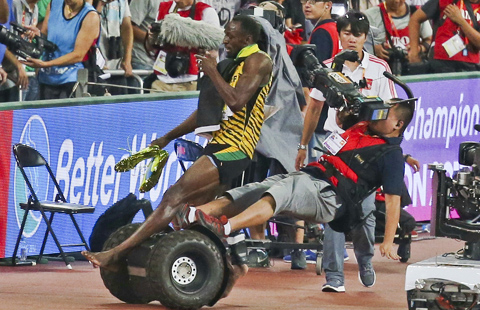 2015-08-29 10:07Usainity: Cameraman bowls over Bolt
