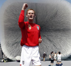 The wax figure of British soccer player Wayne Rooney is seen in front of the British Pavilion at the Shanghai World Expo.