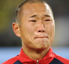 DPR Korea's Jong Tae-se cries while listening to his country's national anthem.