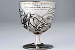 The silver cup given to the marathon winner at the first modern Olympic Games in Athens in 1896 sold for $860,000 in London on Wednesday, breaking the auction record for Olympic memorabilia.