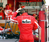 Ferrari Formula One driver Michael Schumacher of Germany walks to his pit, after speaking to his team's technical director Roth Brown, as he retired from the Japan Grand Prix with an engine failure at the Suzuka circuit in Suzuka, central Japan October 8, 2006. [Reuters]