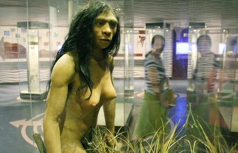 With the opening of Nanjing Tangshan Homo Erectus Fossil Museum on Aug 11, a wax statue of a female homo erectus attracted numerous visitors.