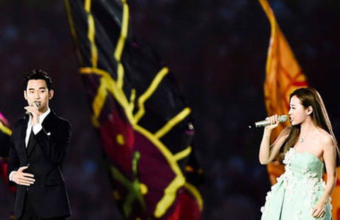 Flag raisers from the honour guard hoist the national flag of the People's Republic of China during the opening ceremony for Nanjing 2014 Summer Youth Olympic Games in Nanjing, capital of east China's Jiangsu Province, Aug. 16, 2014.