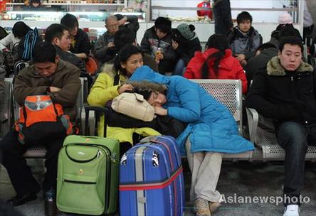Starting Friday, the first day to book tickets for the travel rush expected to last from January 11 to February 28, long queues appeared at ticket booths in almost every major railway hub. In Wuhan, college students were first hit by the rush, as many schools' winter break starts from January 10 to 17. As more than 70 percent of the?one million?students residing there were expected to go home by train, local railway authorities have set up ticket agents on campus, opened more ticket booths for students at stations and offered special trains for students.
