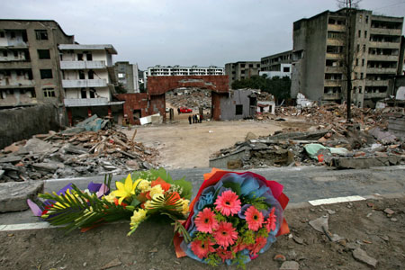 Updated: 2009-01-24 11:34 Flowers laid by local residents to commemorate victims of the May 12 earthquake are seen at a square in Hanwang Town, Mianzhu City, Southwest China's Sichuan Province, January 23, 2009. Millions of people living in China's quake-affected areas make preparations for the upcoming Lunar New Year, which falls on January 26. [CFP] ![]() ![]() ![]() |