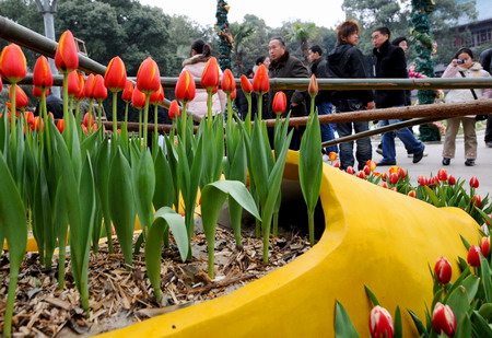Tourists visit a botanical garden in celebration of the Chinese Lunar New Year of the Ox in the city of Wuhan, central China's Hubei province Sunday January 25, 2009. [Xinhua]