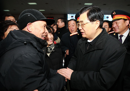 Updated: 2009-01-27 11:13 NANCHANG -- Chinese President Hu Jintao visited railway staff and police officers on duty and ordinary people in eastern Jiangxi Province on the first day of the Lunar New Year to extend his festival greetings.
