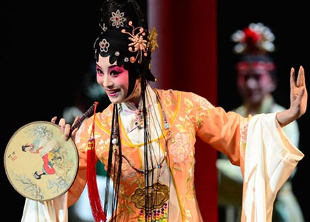 Actors perform a scene from Kunqu Opera "A Dream of Red Mansions" during the 10th China Art Festival in Jinan, Shandong province on October 14, 2013.