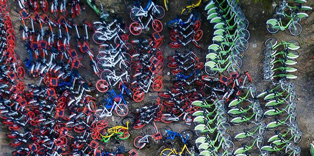Aerial photos depict China's booming bike-sharing trend