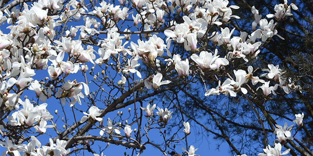 Magnolia flowers blossom along Changan Avenue in Beijing