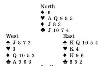 We are looking at situations in which third hand should or should not follow the "third-hand high" mantra. Which is right here? South is in four hearts. West leads a fourth-highest diamond two. After dummy plays low, should East put in his nine or rise with the king?