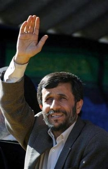 Mahmoud Ahmadinejad, waves to his suporters during his tour of Gorgan in