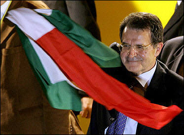 leader Romano Prodi celebrates at the union's headquarters in Rome. Prodi