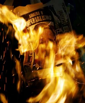 George W. Bush burns after Venezuelan supporters of President Hugo Chavez