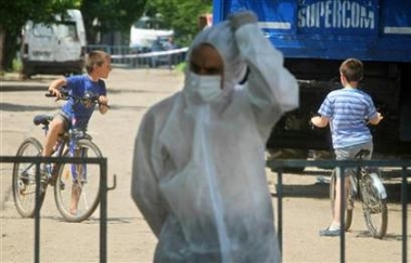 quarantined area on the outskirts of Bucharest, May 22, 2006.