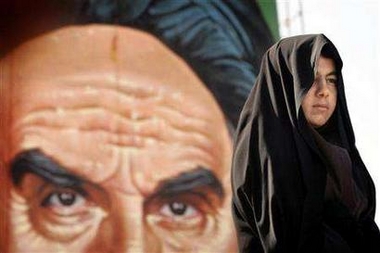 Late Leader Ayatollah Ruhollah Khomeini, while standing under a huge