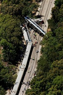 from the train. A bulldozer razed trees and bushes by the crash site to let